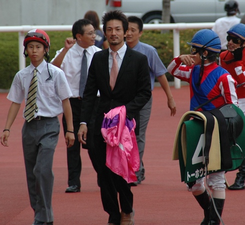 撮ったのは、2008年9月15日朝日チャレンジカップのレース終了後ジョッキーたちが引き上げて来た場面です。