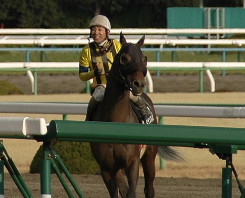 上の写真は9R終了後、藤田騎手と何か大声でしゃべりながら帰ってきたところ。