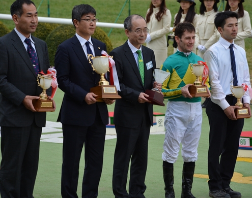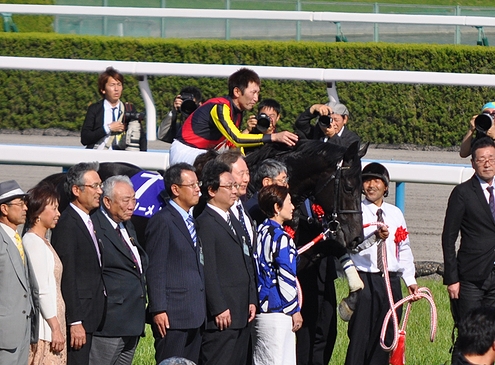カレンミロティック号と池添謙一騎手。13番人気ながらもハナ差の2着。私は2階ぐらいの高さから観戦してたのですが、しばらくはこっちが勝ったかな?と思ってました。桜花賞と同じ。