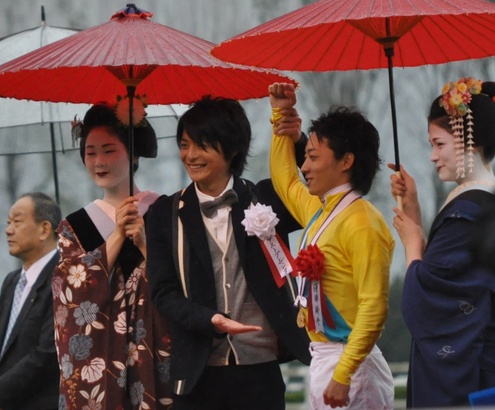 そして、「とま~れ~」があって、四位くんたちジョッキーが登場。