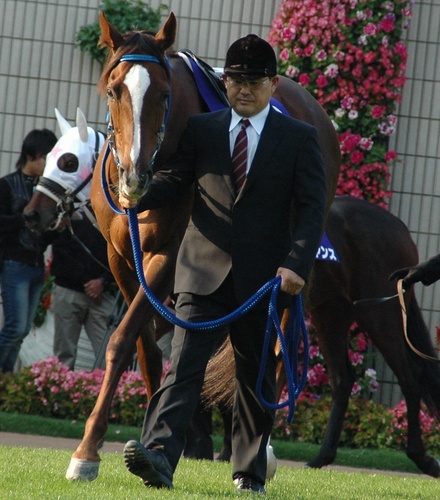厩務員さんに寄りかかるように歩いてる姿がかわいいです。