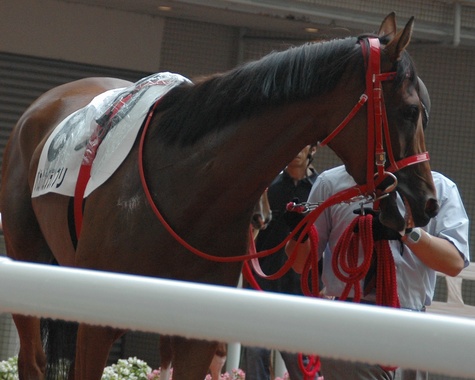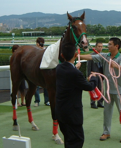 これは2004年4月25日4Rのスタートゲート近くで撮ったヘキレキ号の写真です。
